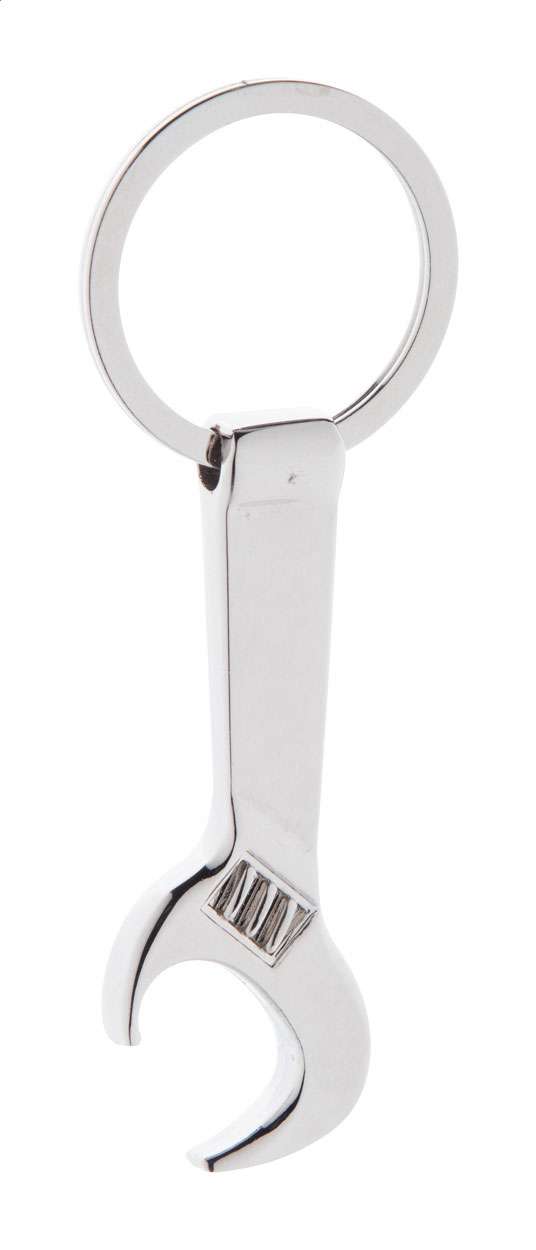 Portachiavi con apribottiglie in metallo a forma di chiave inglese e scatola di cartoncino kraft