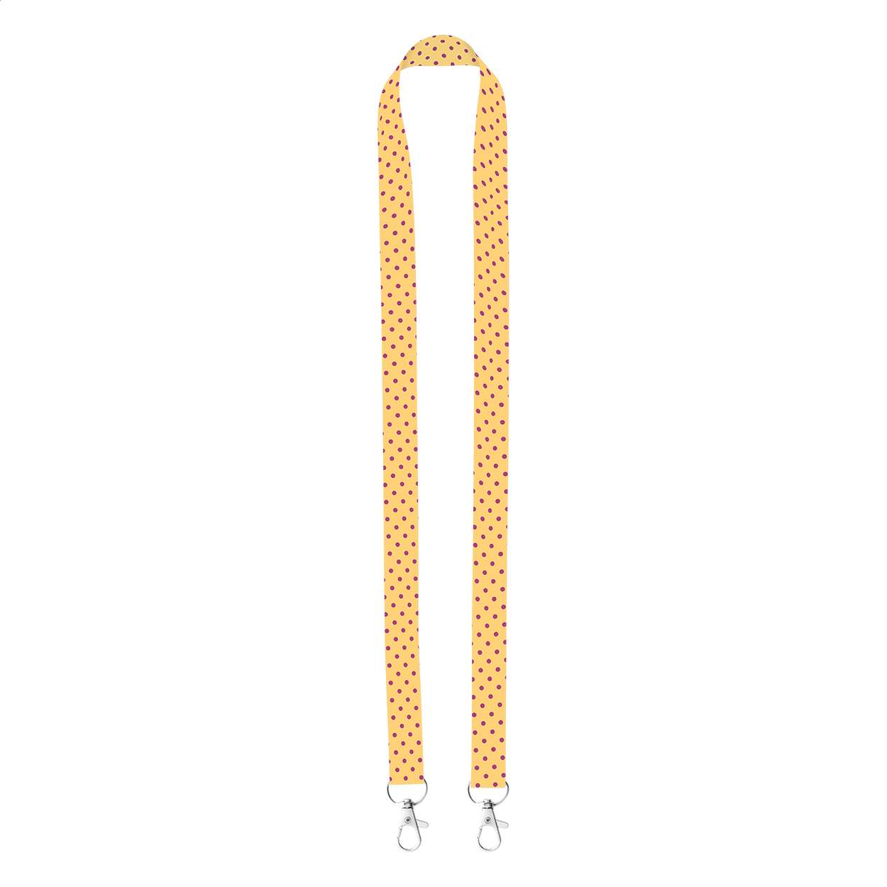 Lanyard in poliestere con doppio moschettone, stampa in sublimazione su entrambi i lati. Quantità minima: 100 pezzi.