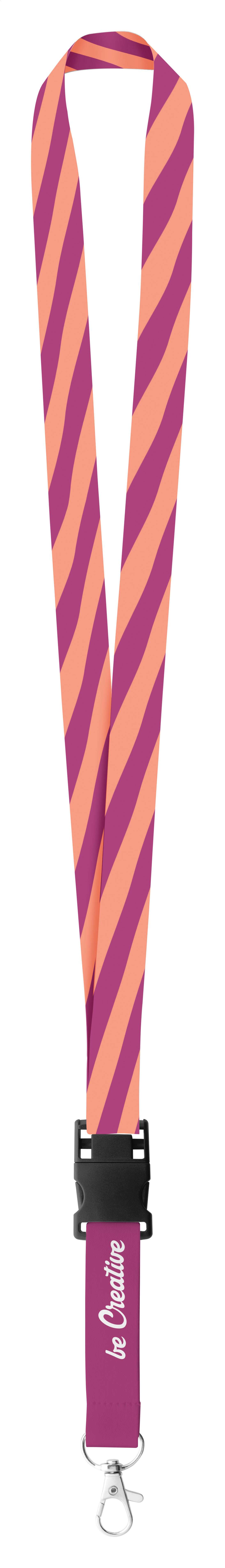 Lanyard porta badge in poliestere con moschettone staccabile e memoria USB da 8 GB integrata nel gancio. Il prezzo include la stampa in sublimazione su entrambi i lati. Ordine minimo: 100 pezzi. USB 2.0.