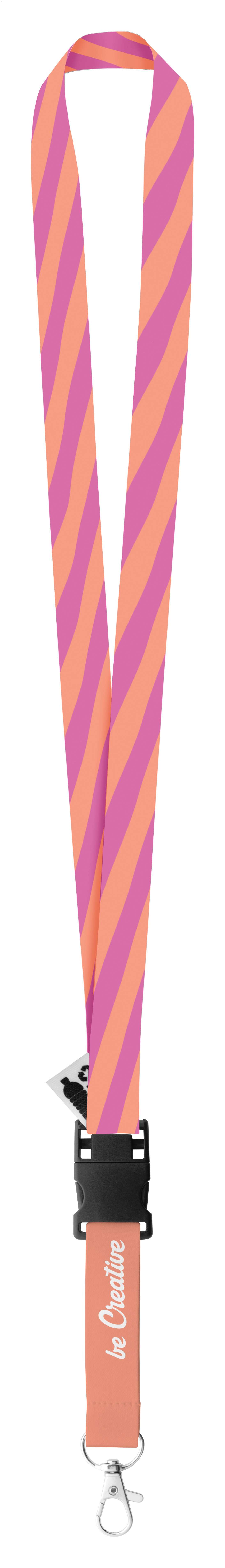 Lanyard in RPET personalizzabile, con moschettone staccabile e flash drive USB da 8 GB incorporata all'interno della fibbia in plastica. Con grafica stampata a sublimazione su entrambi i lati. MOQ: 100 pz. USB 2.0.
