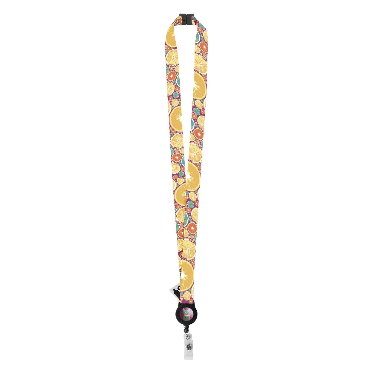 Lanyard in RPET personalizzabile, con porta pass telescopico e chiusura di sicurezza, stampa in sublimazione su entrambi i lati. MOQ: 100pz