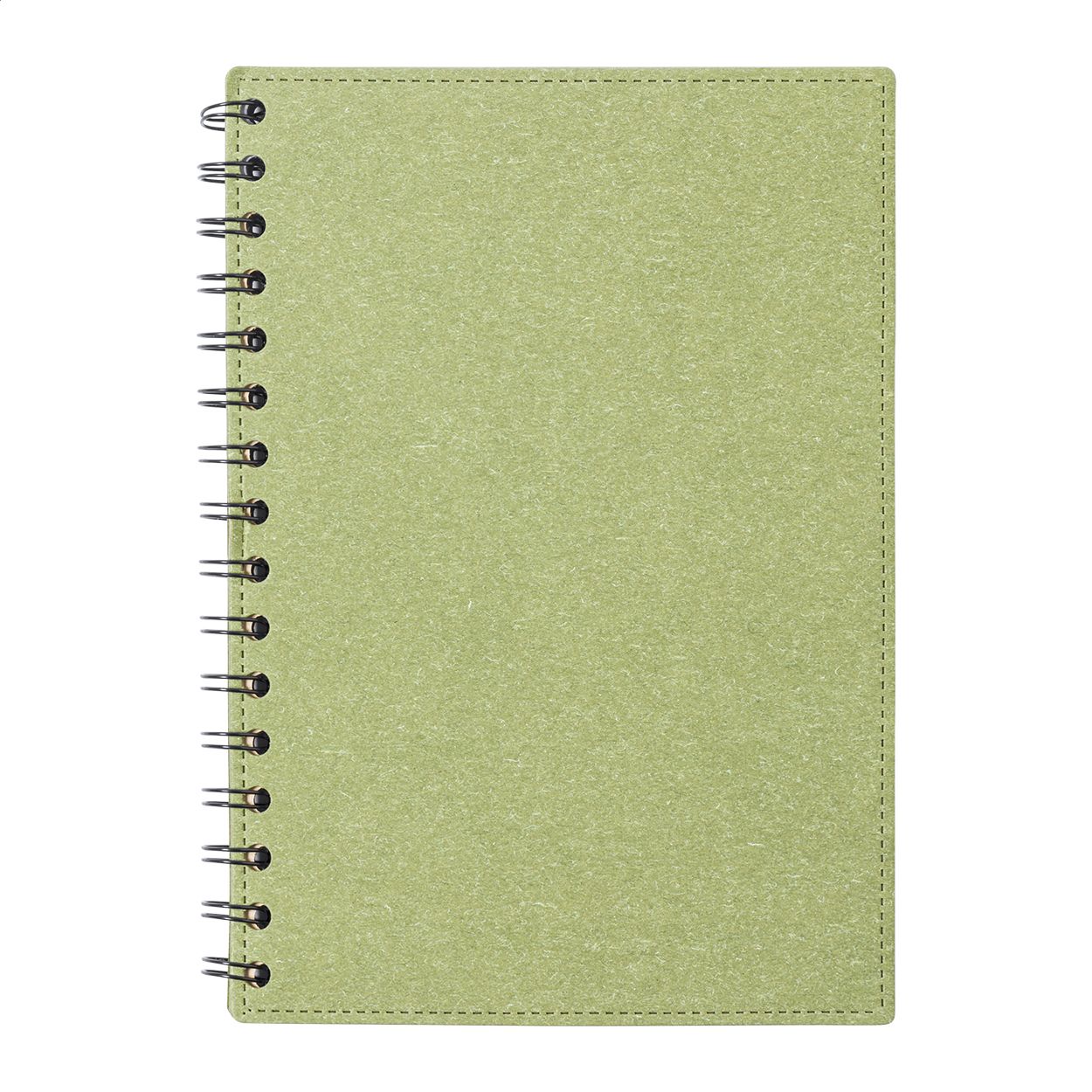 Quaderno a spirale formato A5, con copertina in feltro RPET, 80 fogli a righe in carta riciclata ed etichetta RPET.