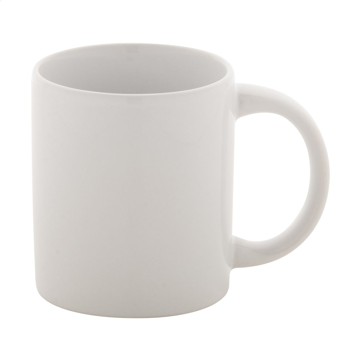 Tazza mug in ceramica da 350 ml. per stampa in sublimazione con esterno bianco, interno e manico in colore coordinato. Fornita in confezione regalo.