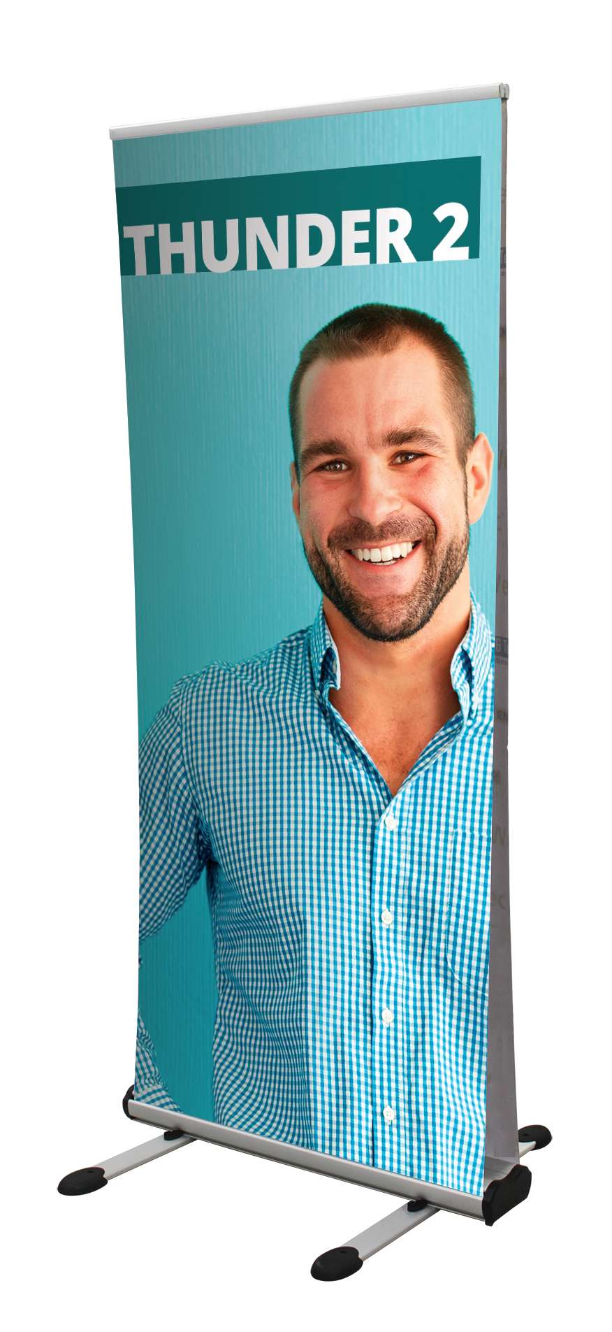 L’unico roll up da esterno bifacciale da 850 mm. Thunder è un roll up ideale per uso esterno essendo molto resistente e solido ma anche molto facile da assemblare e trasportare. Thunder garantisce doppia visibilità al tuo messaggio, quindi un maggior impatto comunicativo. Bifacciale Grandi piedini stabilizzanti Altezza 2m Testato fino a 18-24mph (5 della scala di Beaufort), se ancorato Testato fino a 4-7mph (2 della scala di Beaufort), se non ancorato Completo di borsa per il trasporto