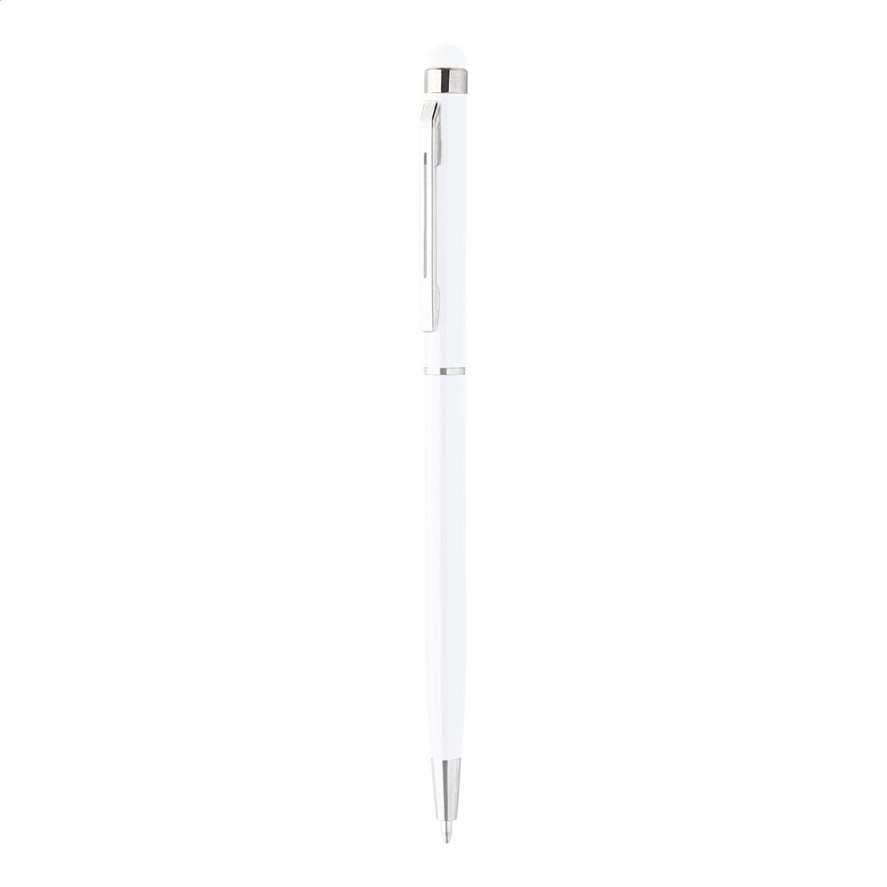 Penna a sfera in alluminio colorato con gommino capacitivo in colore coordinato e refill blu.