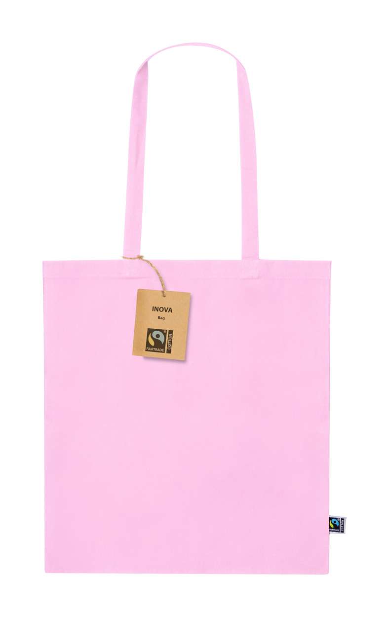 Borsa per la spesa in cotone equosolidale colorato con manici lunghi. 100% cotone Fairtrade, 180 g/m². ed etichetta Fairtrade.