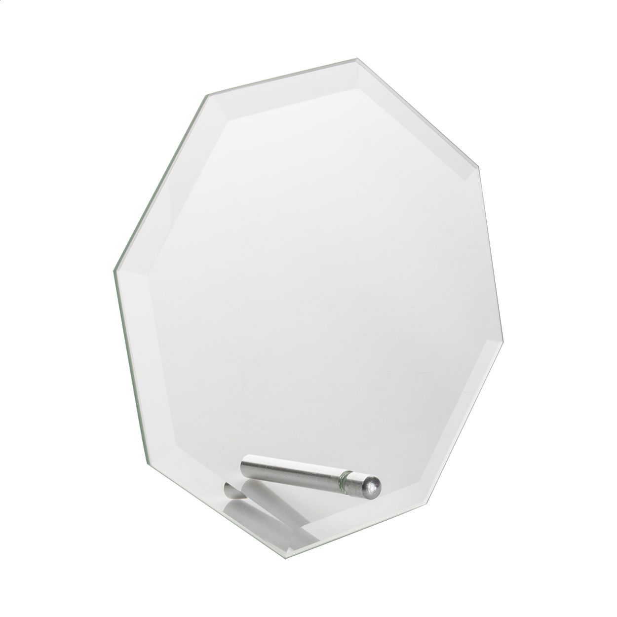 Trofeo ottagonale in vetro con supporto. Fornito in scatola regalo nera.