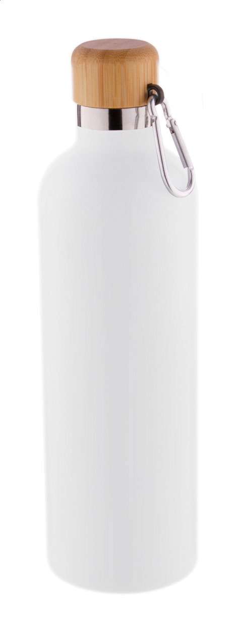 Borraccia termica da 500ml. in acciaio a doppia parete con tappo in bambù e moschettone.