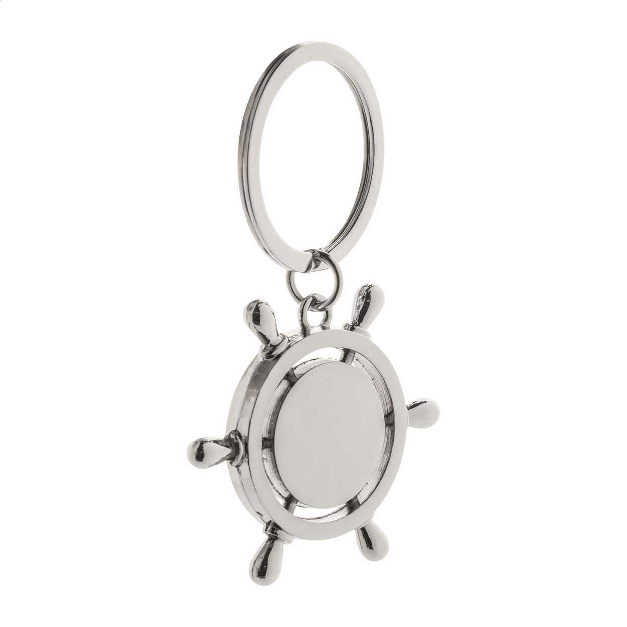 Portachiavi in metallo a forma di timone per barca, in confezione regalo nera.