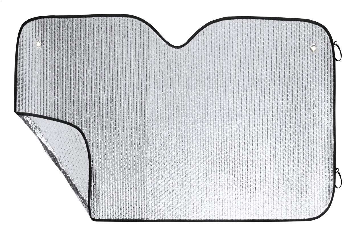 Parasole in alluminio con finitura metallizzata argento e profili neri con 2 ventose.