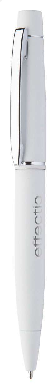 Penna a sfera in metallo con meccanismo a rotazione, finitura gommata e refill blu. Rivestimento speciale per incisione laser a specchio.