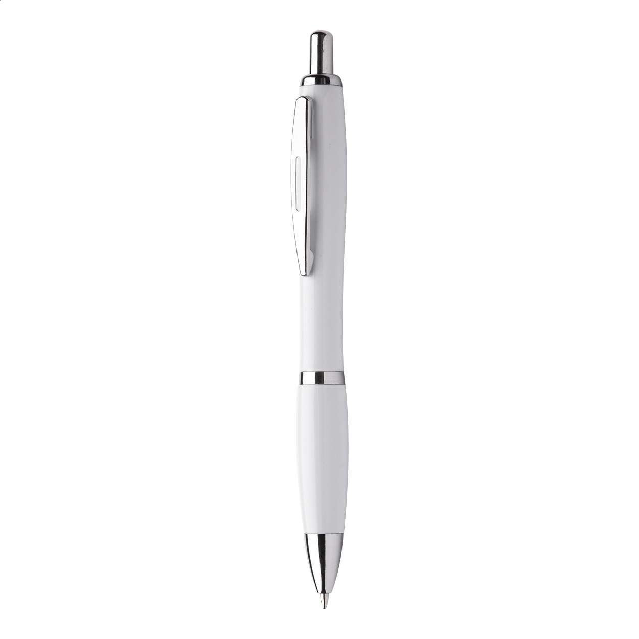 Penna a sfera con fusto in plastica antibatterica e parti cromate. Contiene un nano additivo all'argento che impedisce la formazione di batteri sul corpo della penna. Con meccanismo a scatto e refill blu. Conforme alla norma ISO 22196:2011.